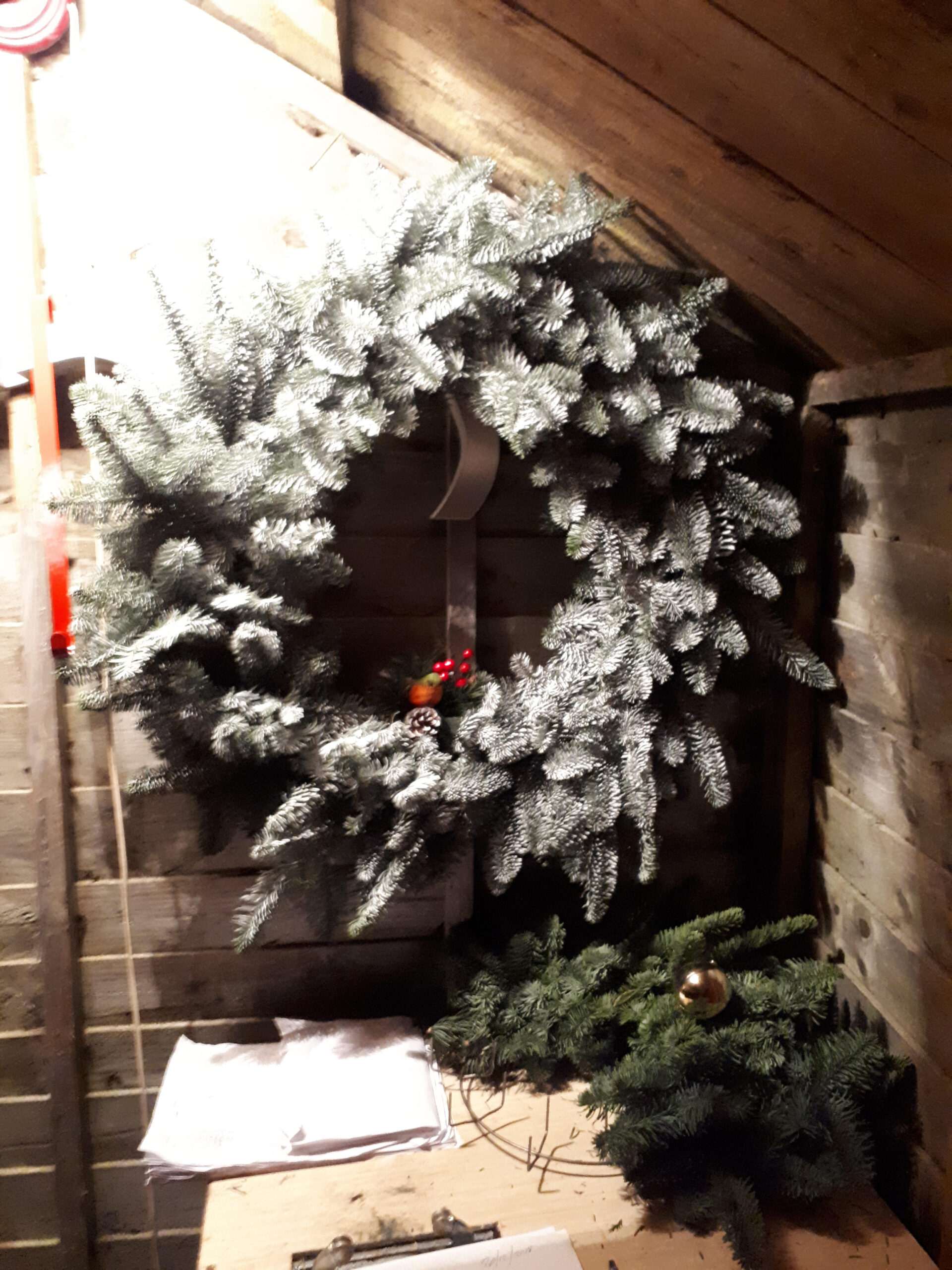 Irish handmade Christmas wreath. Our wreaths are made from real Noble fir foliage which has nice scent and soft fir branches. We are a grower and spend the summer months maximising production and colour in our trees. The foliage we select has a rich and dense colour which is then used to make real Christmas Wreaths.